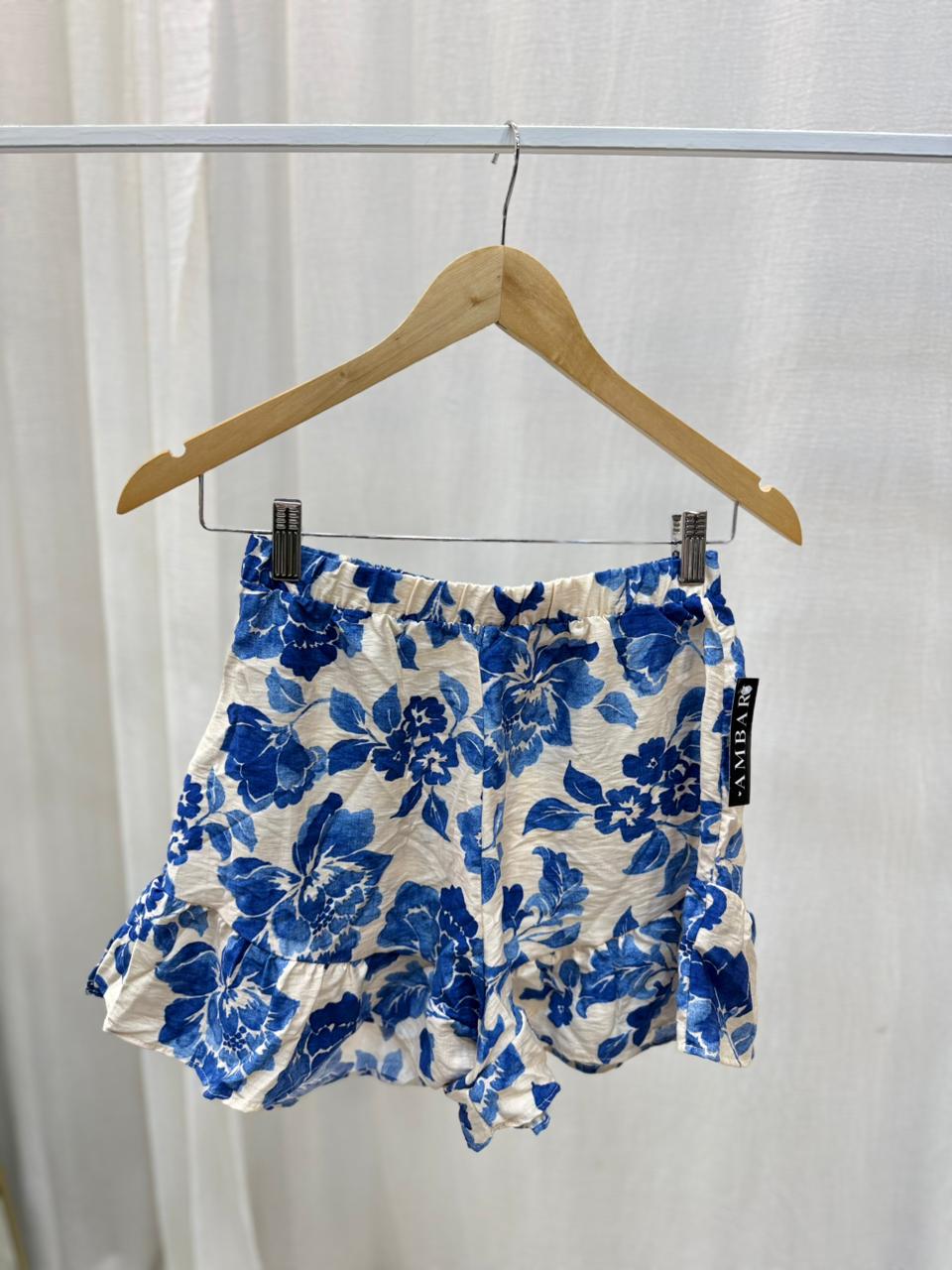 Short de simil lino estampado azul