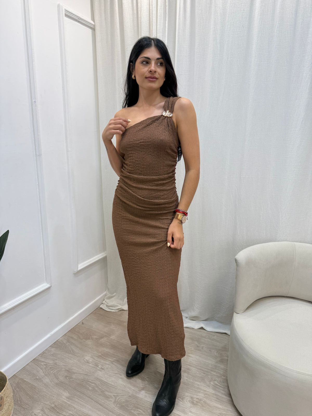 Vestido largo de bambula un solo hombro
