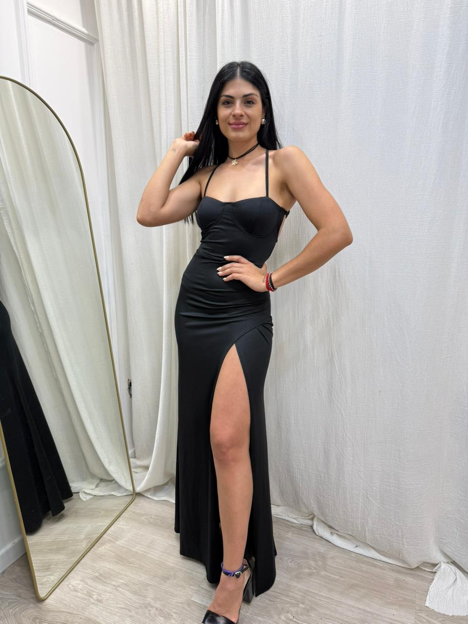 Vestido largo de lycra armado espalda entrelazada