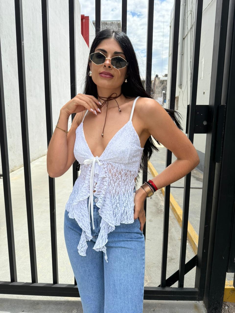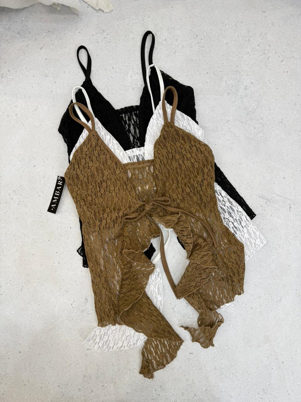 .Confeccionado en tela de encaje