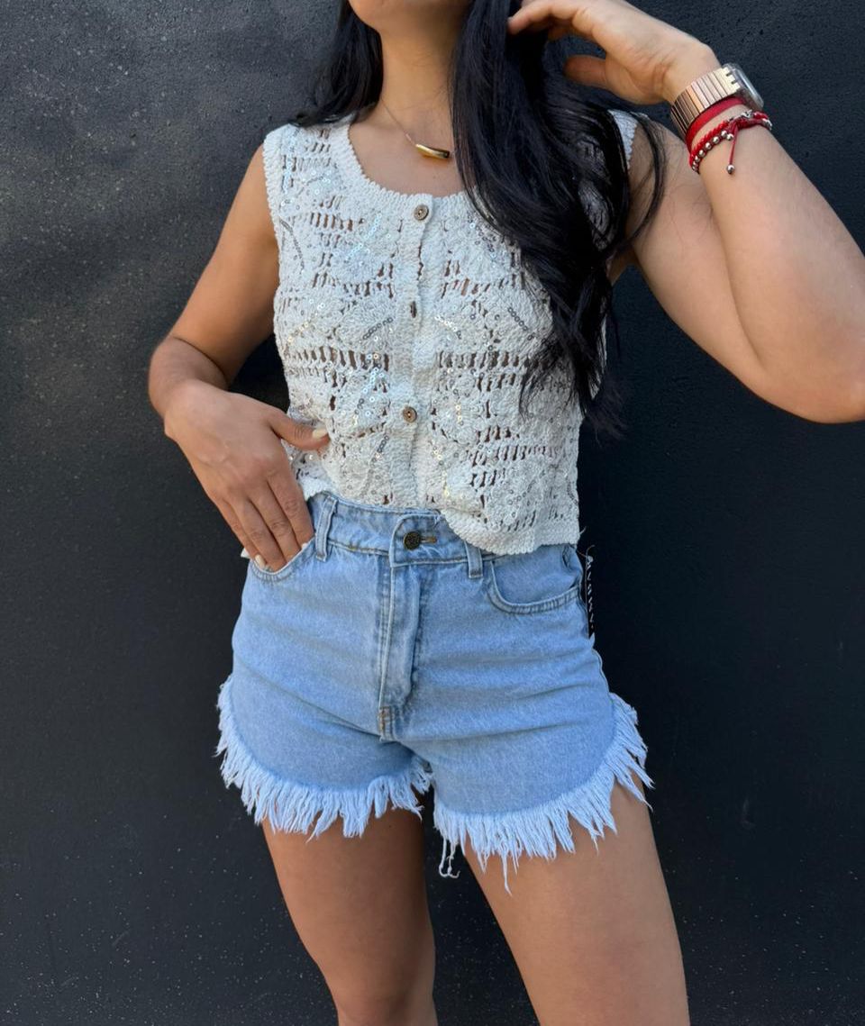 Chaleco tejido importado con lentejuelas